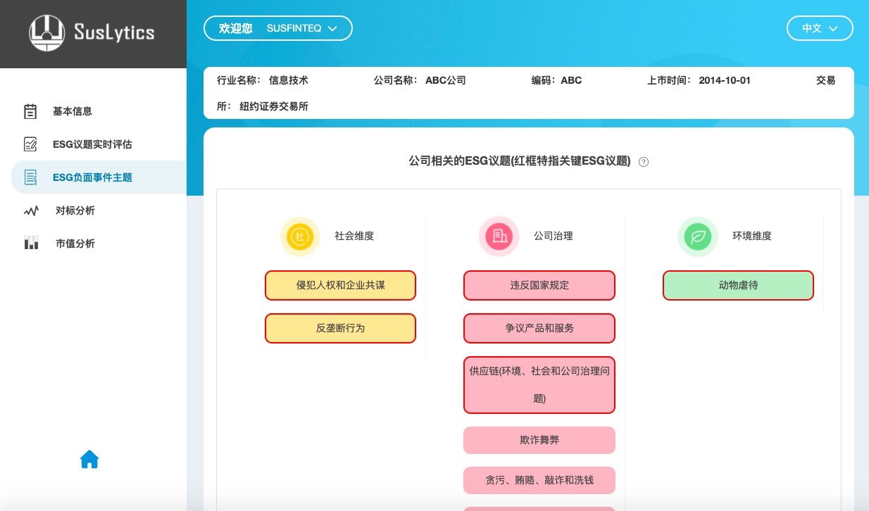用户获得超过300家中国公司(包含沪深300和中资海外)的ESG负面信息的实时量化分析